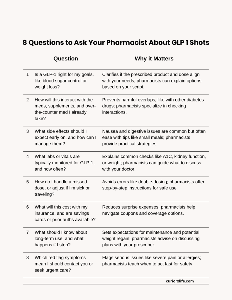 8 Questions to Ask Your pharmacist About GLP 1 Shots